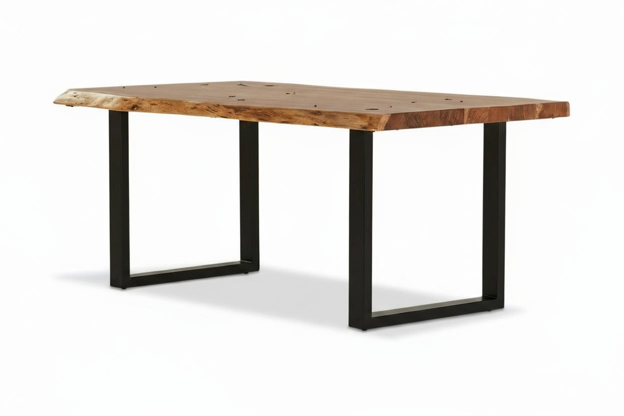 Hands down, The Calcutta Collection is our most popular Live Edge Collection. Shown in a matte Natural Finish on 100% Solid Acacia Wood, these meticulously crafted Dining Tables are manufactured to the highest quality standards in the industry. Each Dining Table will be one of a kind and may have some unique markings, knots, fissures and very small surface cracks in the wood. These Dining Tables are a Masterpiece! We call this the "Legendary Collection" because these Dining Tables are just that good.