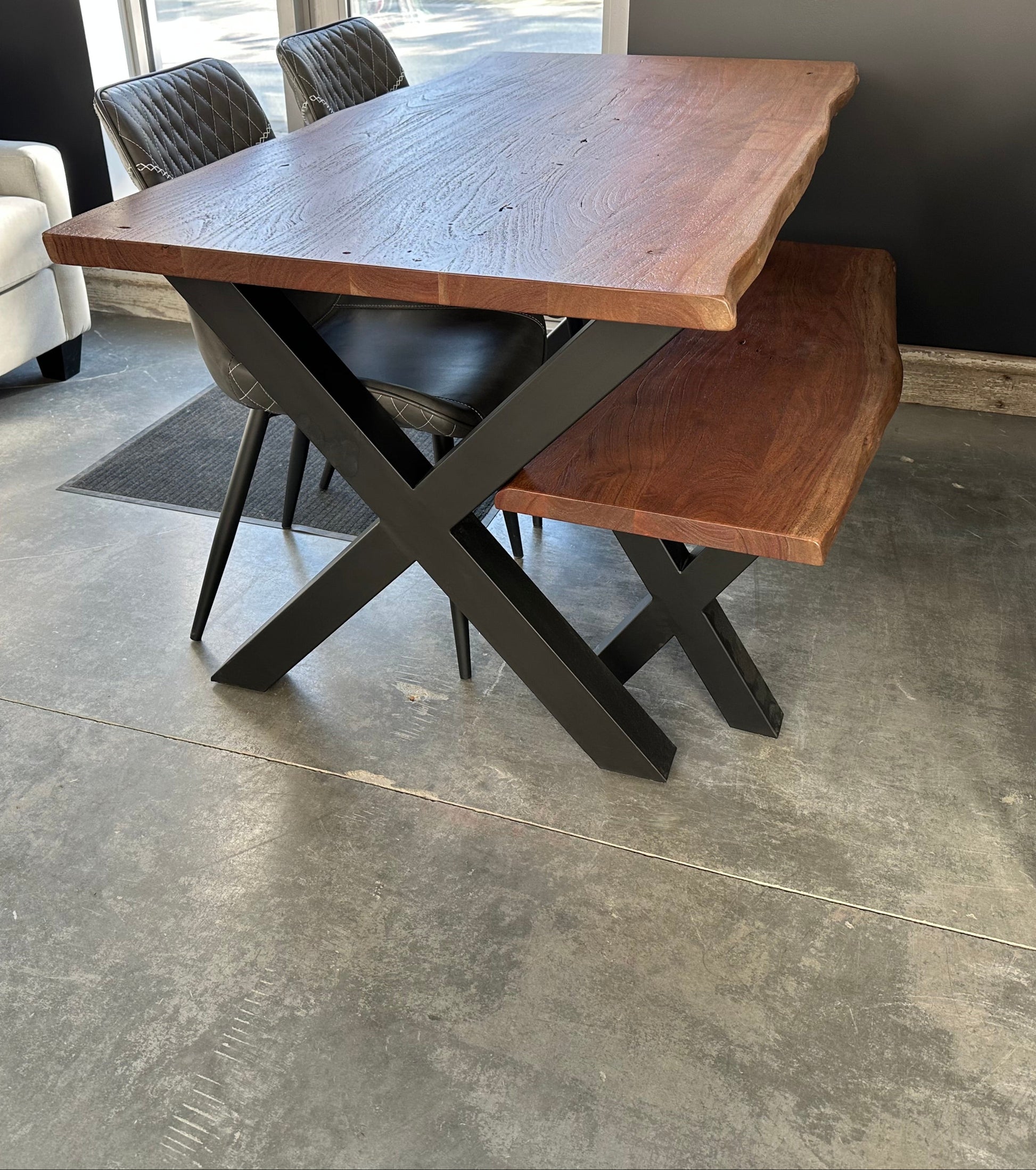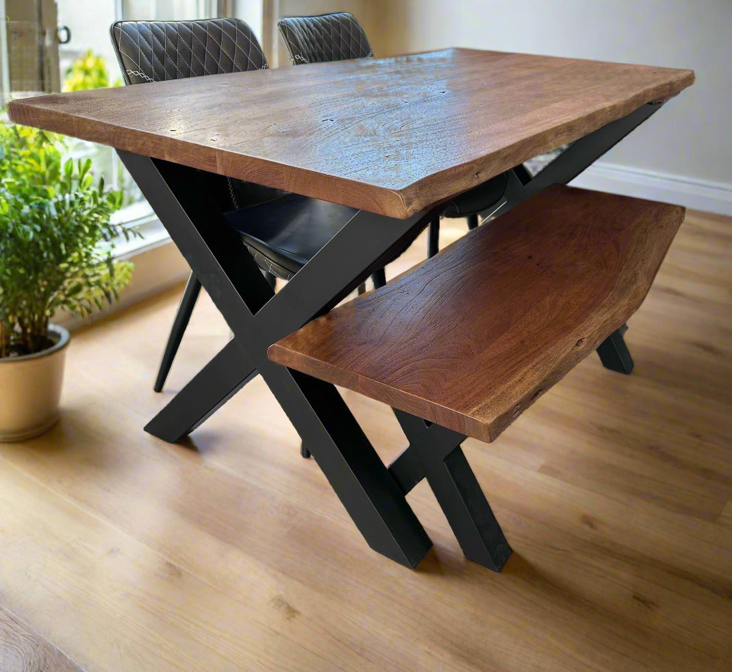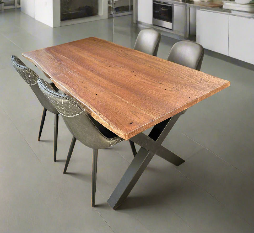 Calcutta Live Edge Dining Tables - X Bases - 2 Sizes - 2 Stains - 35mm Tops
