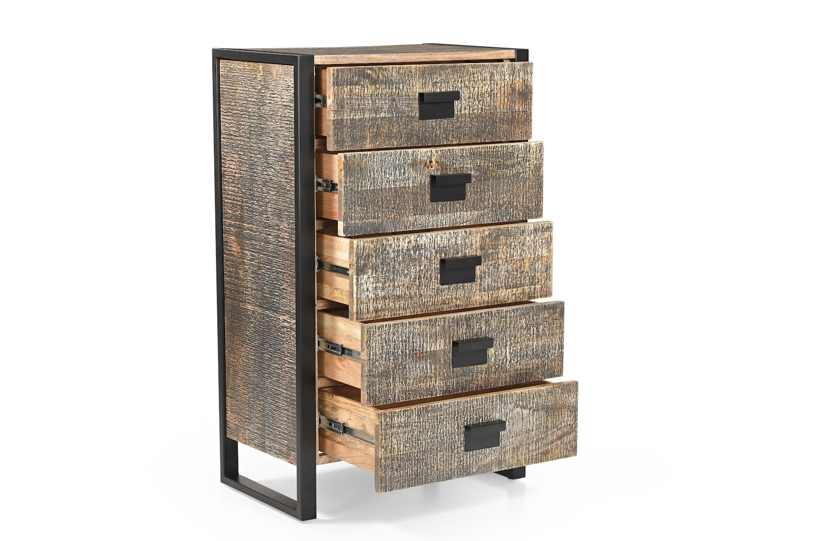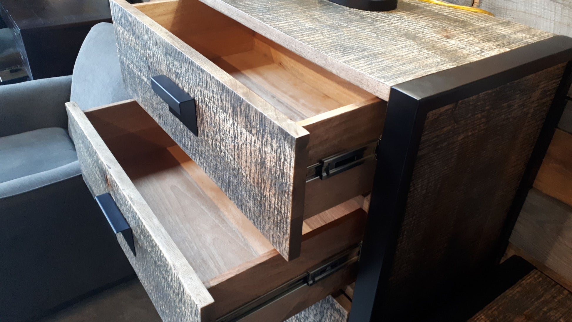 The Wyatt Collection combines Modern and Rustic Industrial Styles and features a smooth, saw cut, distressed finish. Chatter marks throughout add texture and enhance this unique Collections appearance.