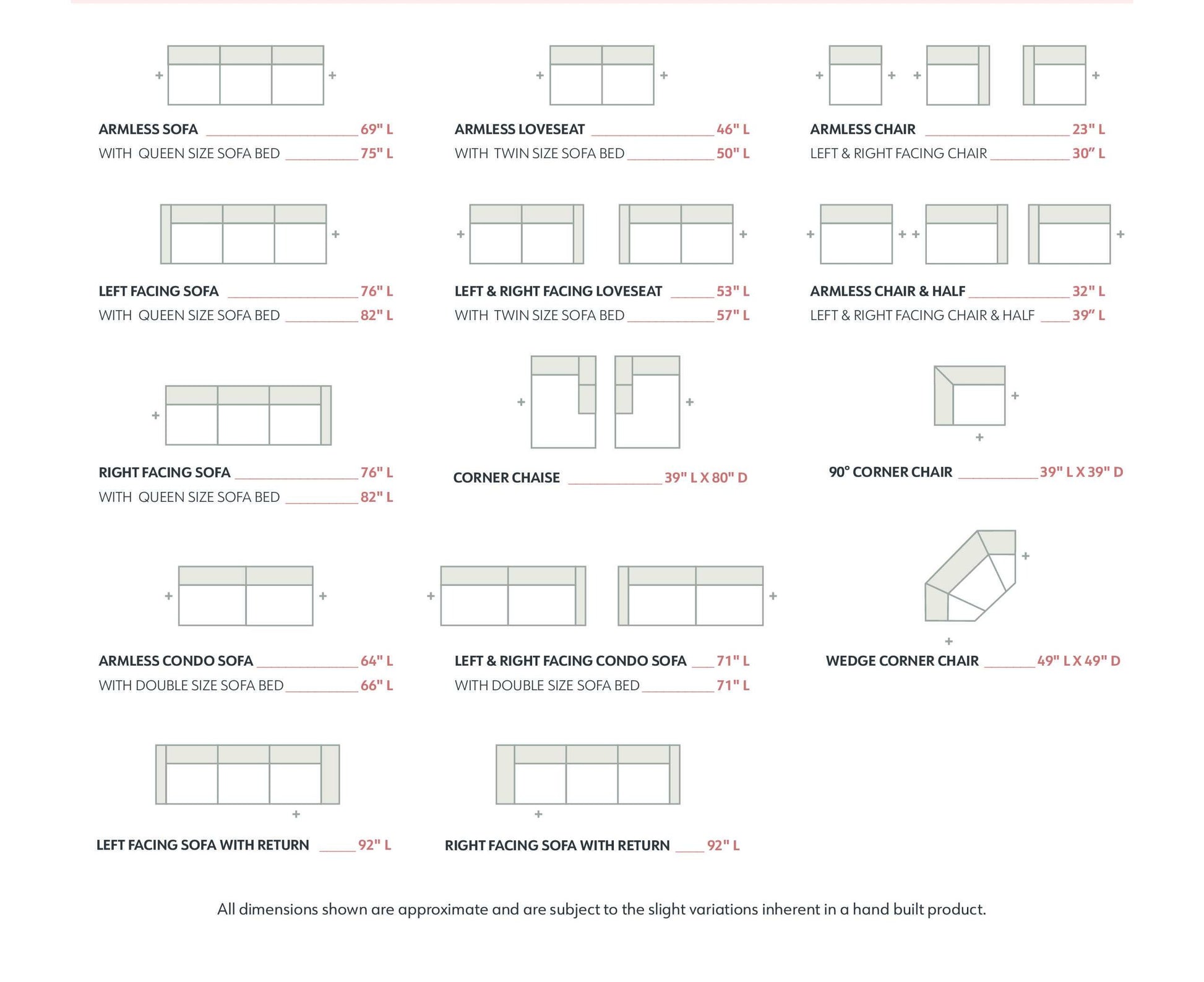 The Baltimore Sectional is available in Condo-sized to Super Sized, or anything in between. Shown in the details are 3 of these size options. The Baltimore is available in over 500 of the latest fabrics to suit your décor. This premium quality, custom made, BC product can be delivered into your home in 4-5 weeks. Enjoy the difference real quality makes. Exclusively manufactured for Homestead Furniture.