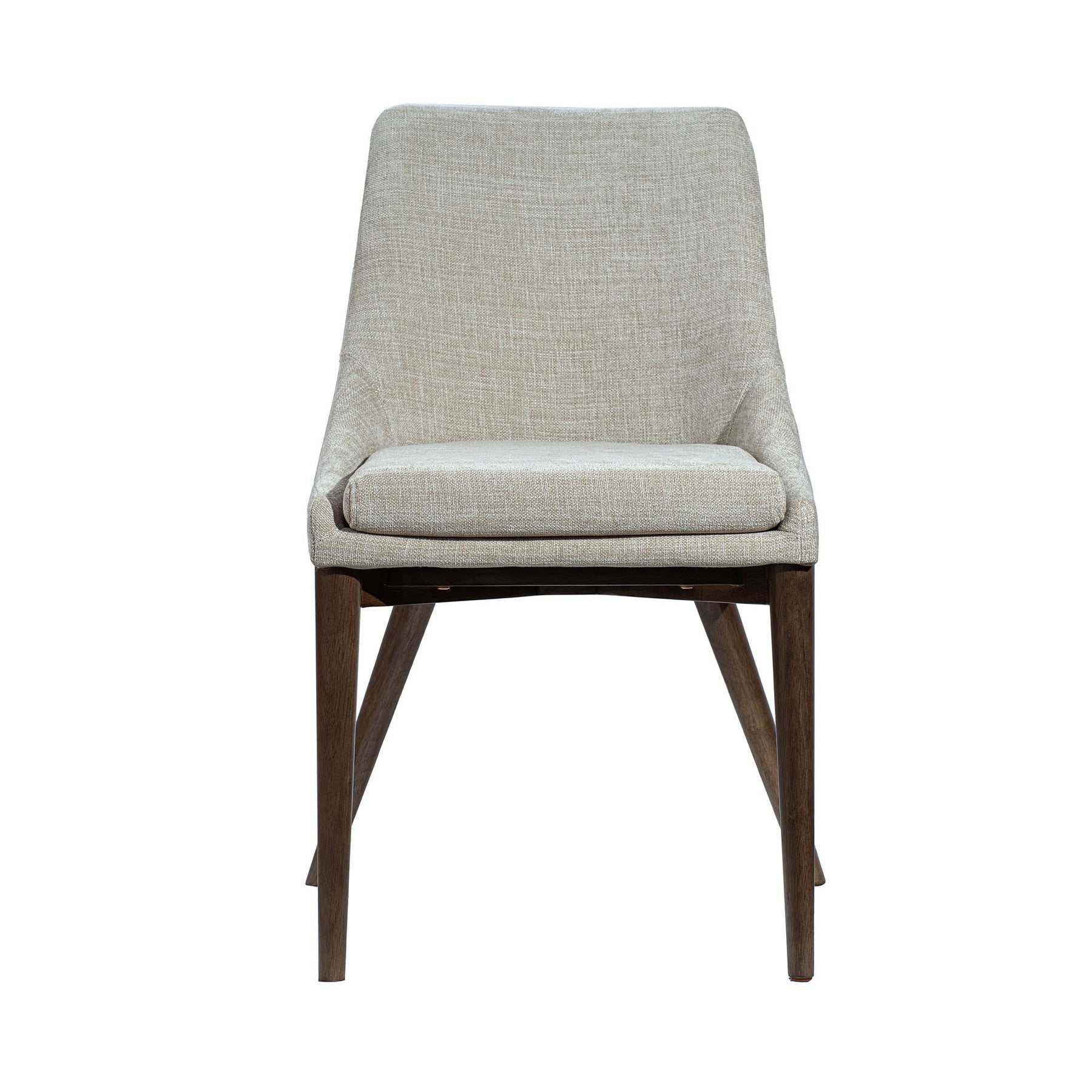 A refined dining chair with a soft, neutral tone that brings a sense of calm elegance to any interior. The durable upholstery and wooden frame ensure style and stability.