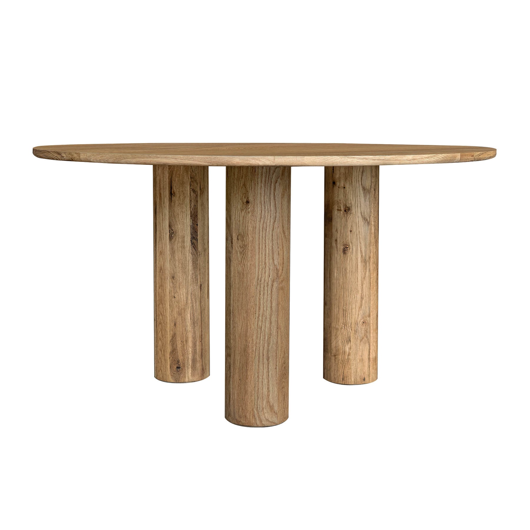 This dining table in Brown is crafted from durable oak and oak veneer for lasting strength. Its round silhouette encourages conversation and creates a cozy dining experience, while block-style legs provide sturdy support and a classic look.