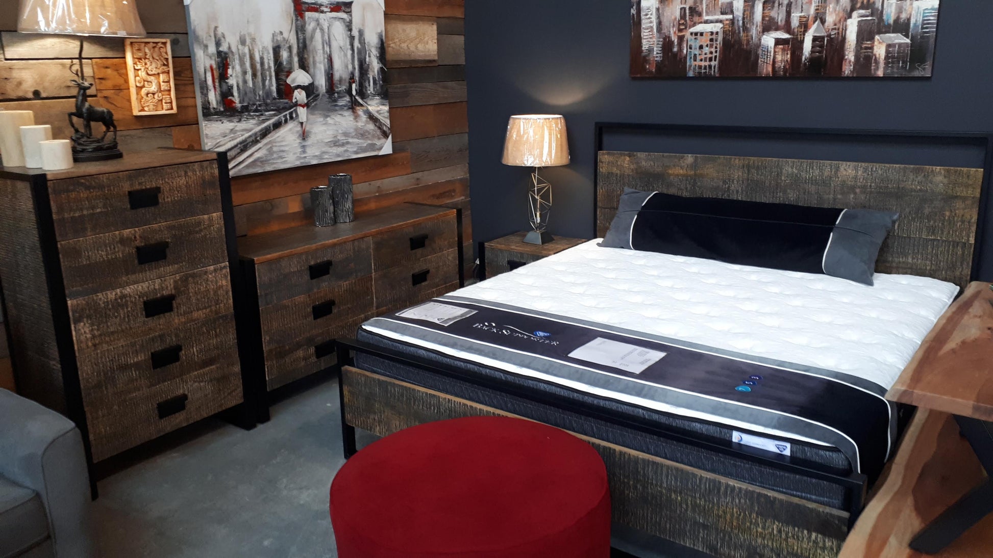 The Wyatt Collection combines Modern and Rustic Industrial Styles and features a smooth, saw cut, distressed finish. Chatter marks throughout add texture and enhance this unique Collections appearance. Take note of the amazing attention to detail in the 100% solid wood, under mattress support system.